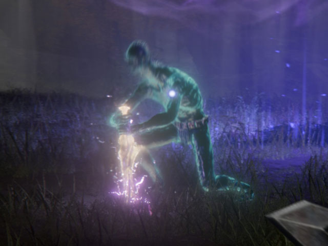 - Onda Expansiva + Bolas Gravitatorias: Uno de sus ataques más peligrosos. Se arrodillará en el suelo como en la foto de arriba, creará una onda expansiva (por lo que deberás salir corriendo para que no te pille con la onda) y tras esto comenzará a lanzarnos varias bolas de gravedad, por lo que lo suyo sería alejarte para esquivarlas de forma sencilla y luego retomar la ofensiva. Cuando finalice de tirarte las bolas es un buen momento para curarte ya que tendrás algo de tiempo entre que el jefe vuelva a la ofensiva.